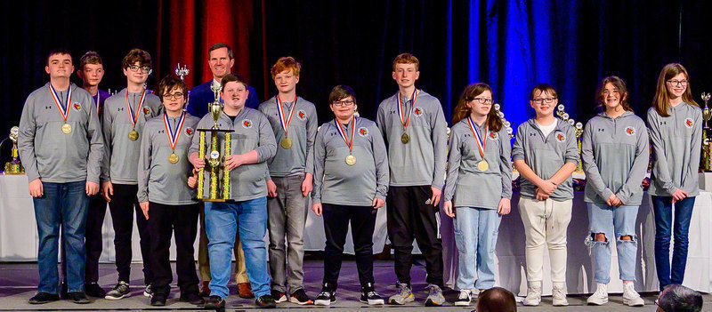 This was the team's second Quick Recall state title in three years! Team members are: Jacob Adams, Tim Barnes, Blakely Callahan, Ethan Combs, Seth Dotson, Brayden Dyche, Alex Looney, Max Morris, Lauren Scheithauer, Michael Sparkman, Taylor Strunk, Abby Wagers and Aaron Warren.